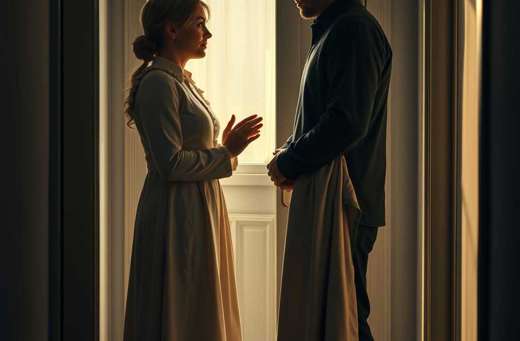 В гостиной царит тишина. Лена сидит на диване, глядя в одну точку. Порванное платье лежит на столе, как вещественное доказательство преступления.