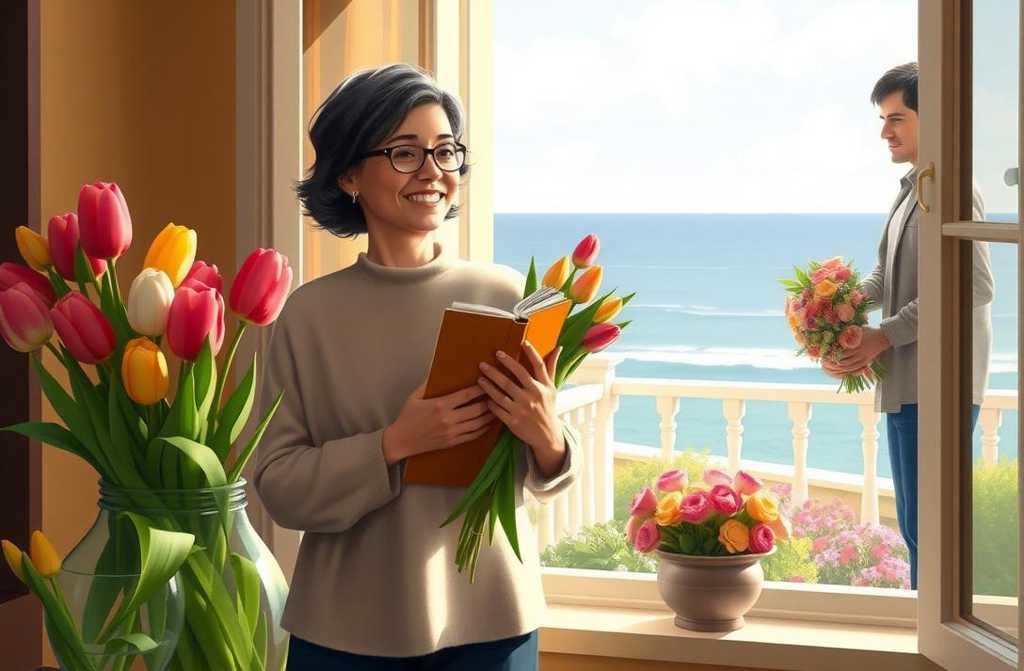 Поправила волосы, открыла. На пороге — незнакомец с тюльпанами. Лет пятидесяти, седина, одет скромно, но опрятно.