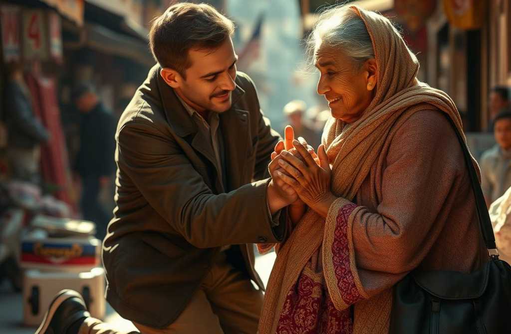 Вокруг них собрались люди. Никто не говорил. Все видели, как миллионер рухнул на колени и обнял родную мать, которую считал мёртвой.