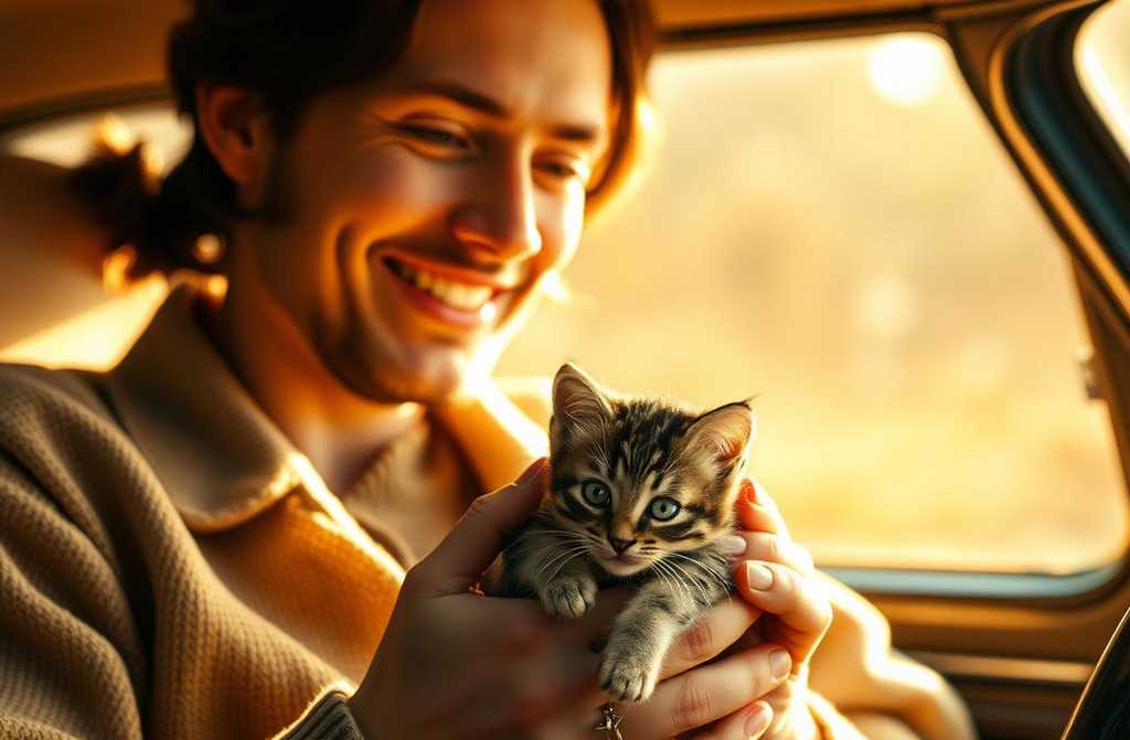 Котенок съел кусочек чебурека и уснул на сиденье, свернувшись калачиком.