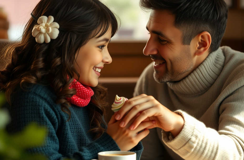 Василиса с облегчением вздыхает и берётся за своё мороженое. Но разговор ещё не закончен ей нужно сказать главное. Когда у неё от разноцветных шариков под носом образовались «усы», она облизывает их и снова становится серьёзной, почти взрослой. Ей уже надо заботиться о своём мужчине, пусть тот уже и старый: у Ивана на прошлой неделе был день рождения. Василиса в садике нарисовала ему открытку с огромной цифрой «28».