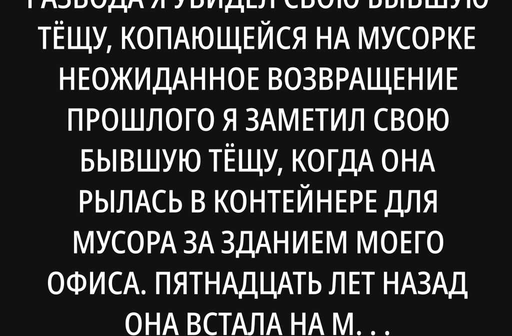 Пятнадцать лет спустя после развода я увидел свою бывшую тёщу, копающейся на мусорке