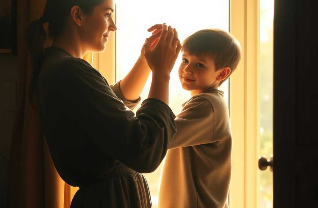 Однажды Дмитрий, проходя по коридору, остановился у двери. Изнутри доносились тихие голоса. Он заглянул и остолбенел: его сын сидел перед зеркалом, позволяя Анастасии касаться своих волос, а на его лице появилась легкая улыбка.