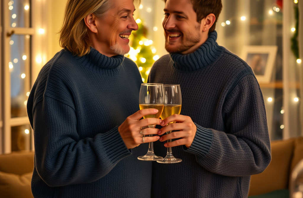 Дверь была открыта, и в тот момент как раз пробило двенадцать. Артём протянул мне бокал шампанского я ему пакет.