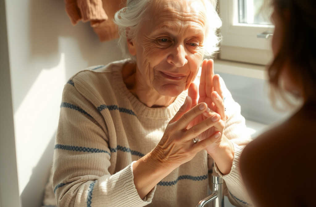 Волосы могут быть седые, потому что тратить пенсию на краску нецелесообразно. Для кого-то вполне хватит дешёвого шампуня. Так что волосы можно и нужно мыть. То же самое касается и лица макияж в возрасте уже неактуален, а чистота лица необходима.