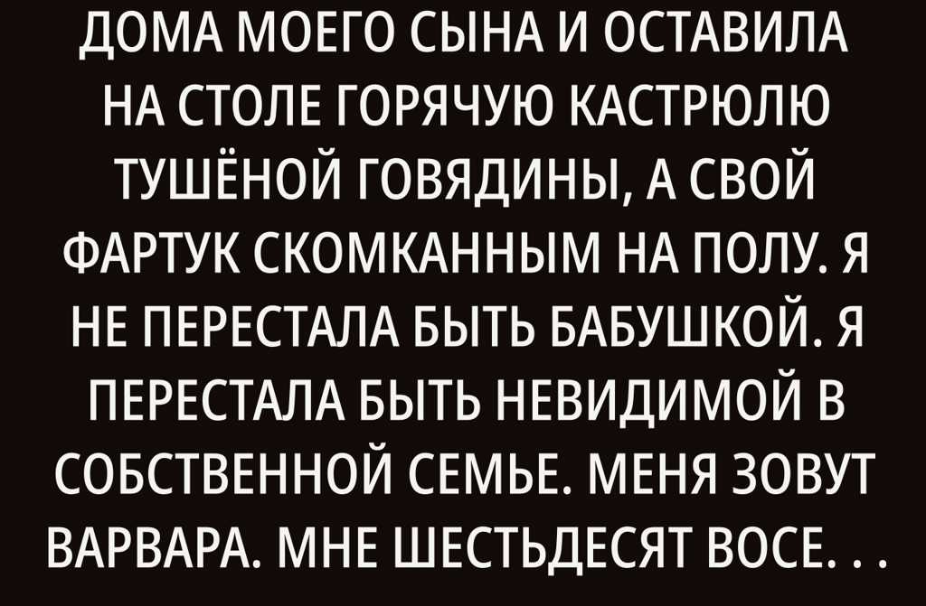 Сегодня вечером я вышла из дома моего сына и оставила на столе горячую кастрюлю тушёной говядины, а свой фартук скомканным на полу. Я не перестала быть бабушкой. Я перестала быть невидимой в собственной семье.