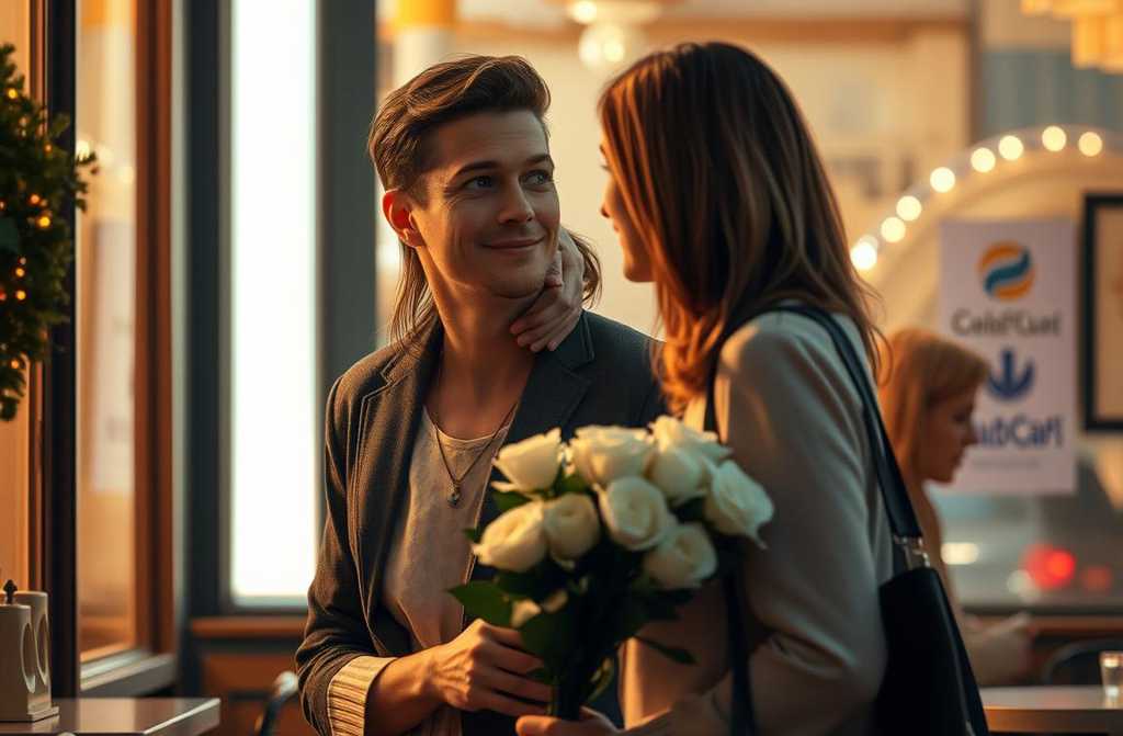 Она наблюдала, кто подходит к входу. У двери стоял молодой человек с букетом белых роз, полукругом обернувшись к ней, будто ждал её с тротуара.
