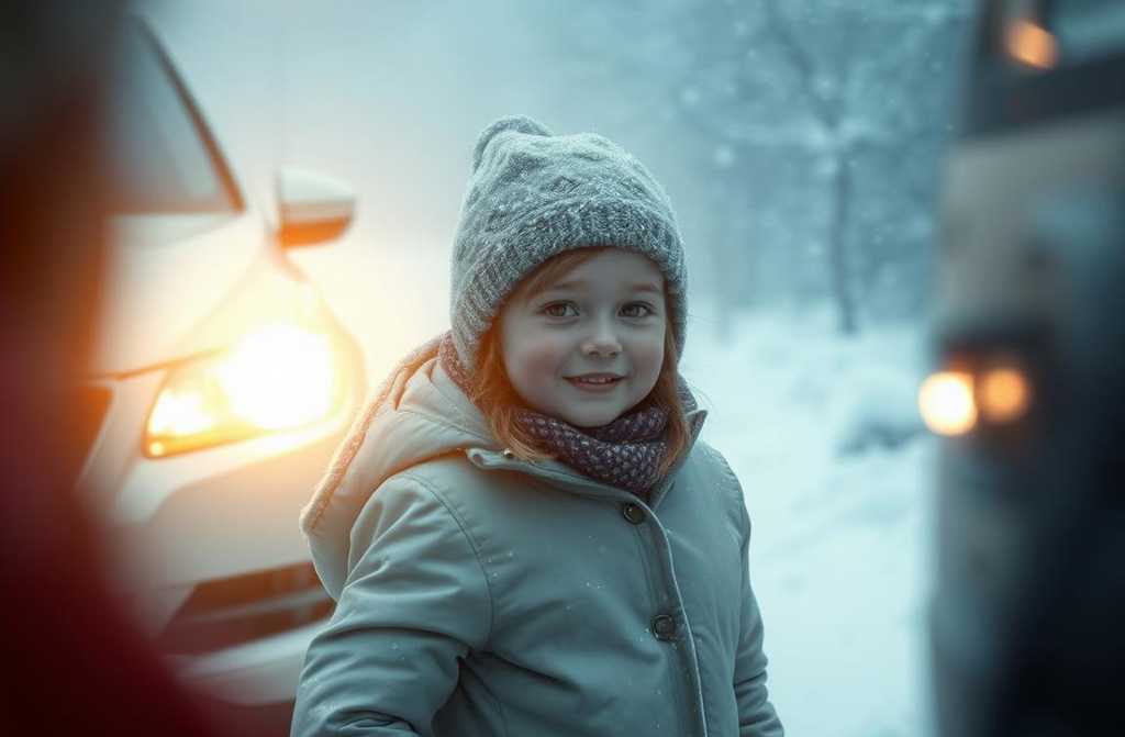 Вдруг в снежной пелене мелькнули огни. Чёрный дорогой автомобиль медленно приближался. Аня, собрав последние силы, вышла на середину дороги, подняв дрожащую руку.