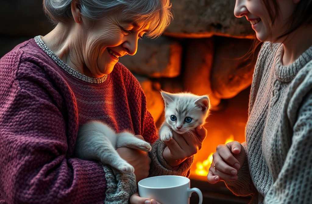 Котёнок, согревшись, стал пить молоко, которое бабушка Зинаида щедро налила ему из кувшина. С того момента ей стало не так одиноко у неё появился собеседник. Котёк мурлыкал, слушал её застольные песенки и играл шерстяными клубками, пока она вязала чулки и варежки.