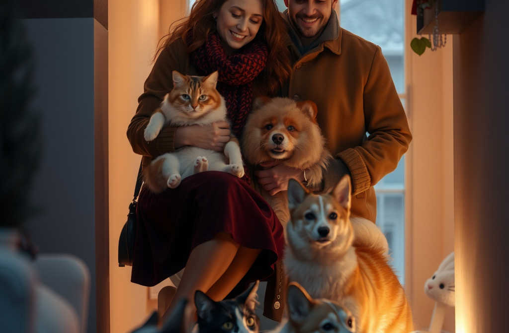 Перед дверью Веры собралась целая животная делегация. Саша открыл дверь и в прихожую катится пятиминутка счастья: собаки, коты, снег, хвосты. Вера села на обувную полку и тихо всхлипнула: финал неизбежен.