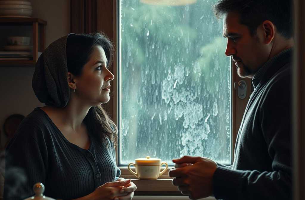 Анна стояла у окна, наблюдая, как дождь стучит по стеклу. Позади слышались шаги мужа, бесцельно бродившего по квартире с телефоном у уха. Уже третий час он о чём-то тихо говорил, и разобрать слова было невозможно.