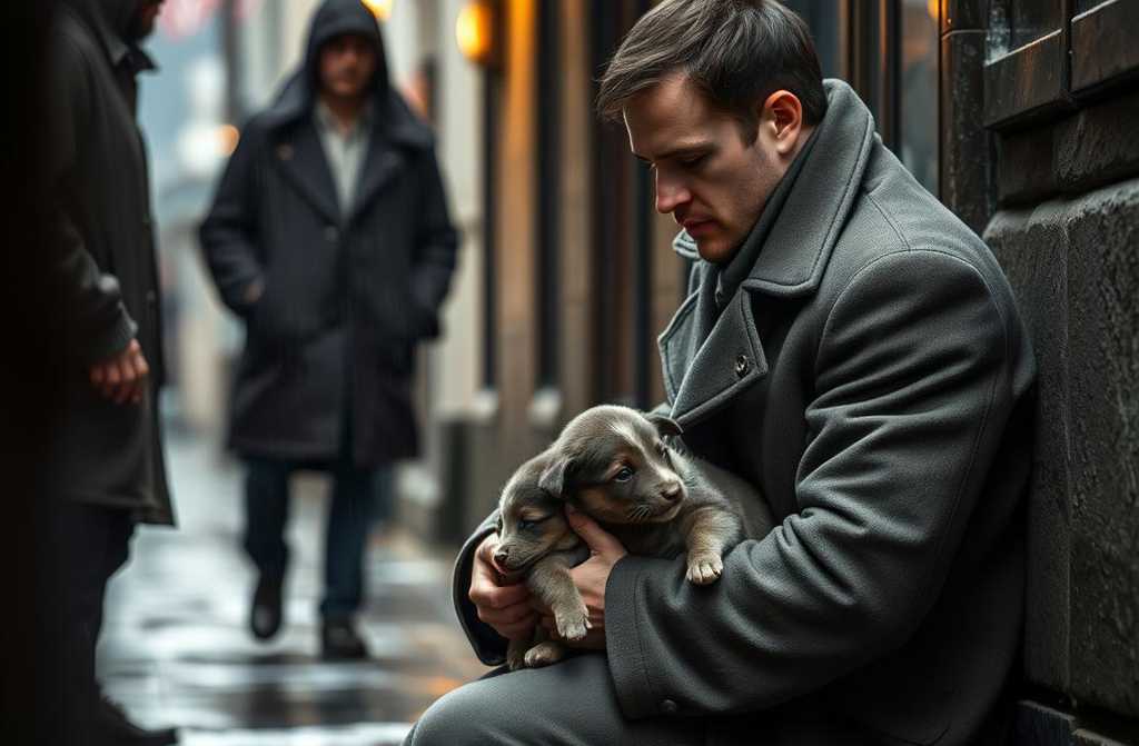 Он пошёл домой, неся под курткой спасённых малышей. Собака шла позади, уже не прячась, хвост опущен, но в её походке зазвучала новая, неуверенная уверенность. В своей скромной квартире Андрей устроил гнездо из старых полотенец в самой тёплой комнате, аккуратно уложил щенков, накормил их тёплым молоком из бутылочки. Мать легла рядом, вытянув голову, её взгляд стал спокойным. Хвост её слегка постучал по полу, прося остаться.