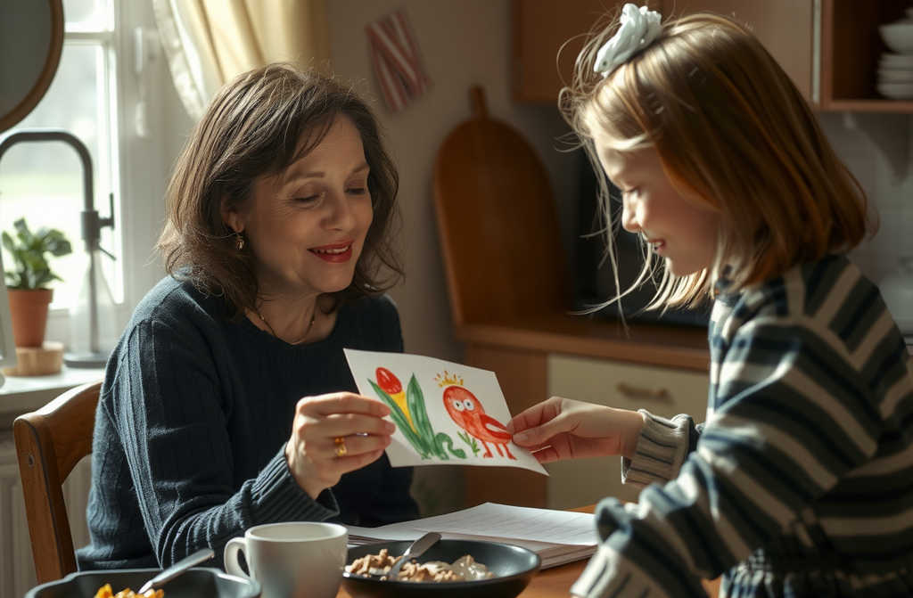 В квартире всё бедно, но чисто. На стенах детские рисунки, в воздухе запах борща и свежих пирожков.