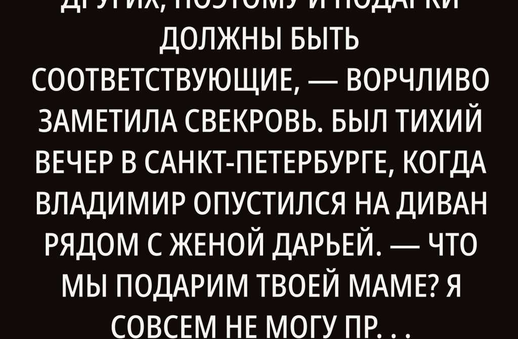 Дарья тяжело вздохнула. Выбор подарка для её свекрови всегда был настоящим испытанием.