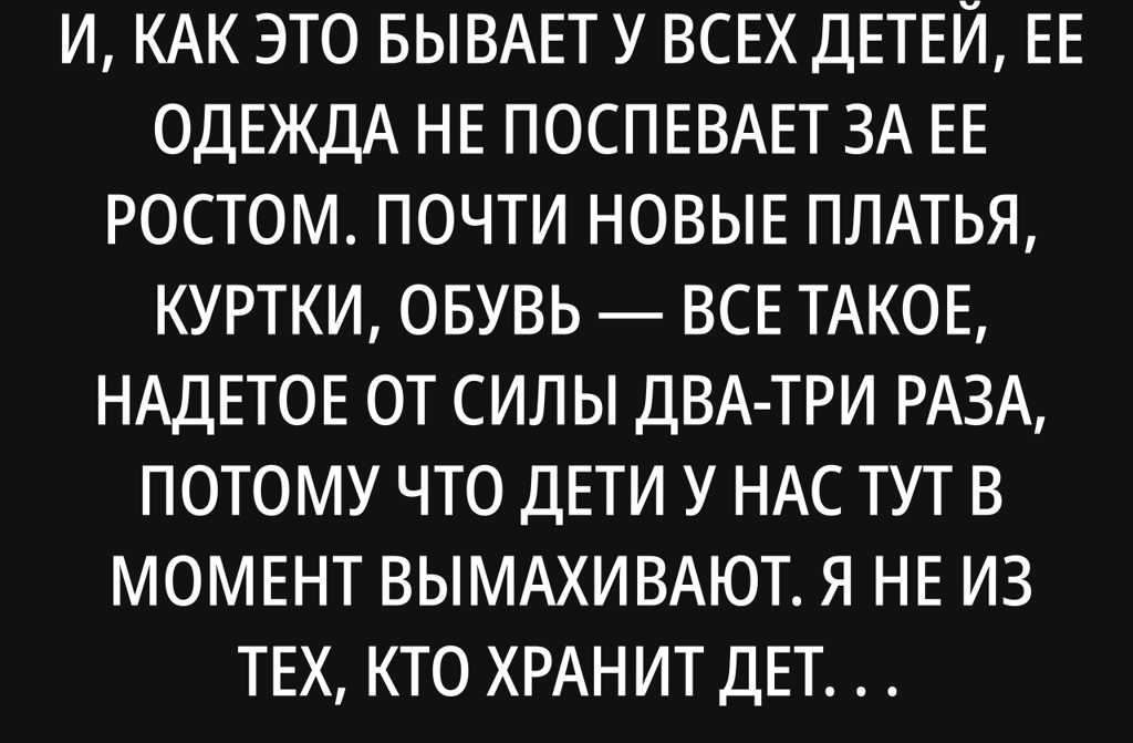 У меня есть пятилетняя дочка, и, как это бывает у всех детей, ее одежда не поспевает за ее ростом. Почти новые платья, куртки, обувь все такое, надетое от силы два-три раза, потому что дети у нас тут в момент вымахивают. Я не из тех, кто хранит детские вещи «на память» шкаф-то не резиновый! Поэтому однажды в выходные я спокойно присела, выгребла все из шкафа, тщательно перебрала каждую вещь и отложила то, что все еще выглядит просто прекрасно. Немногое отправилось в мусорку пятна, дырки, сильный износ. Я не из тех, кто дарит другим хлам, это уж точно.