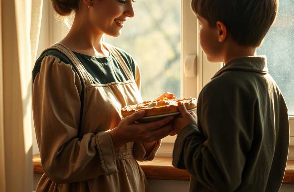 «Пойдём, я угощу тебя пирожком с капустой», — предложила Пелагея, и мальчик, не раздумывая, последовал за ней.