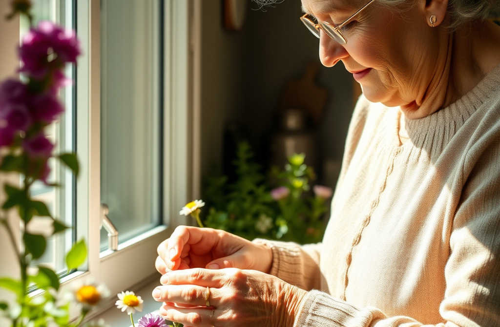 Я, как старший в семье, наблюдаю, как моя тёща, пожилая женщина, поливает герани на подоконнике. В этот момент в комнату вбегает её дочь, Алёна, лет тридцати пяти.