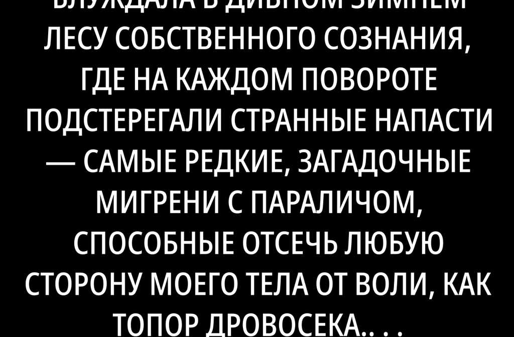 В четырнадцать лет я уже сражался с гемиплегическими мигренями редкими приступами, способными парализовать половину тела.