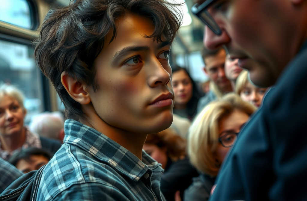Вот она, молодёжь пошла ни уважения, ни совести. Сидит тут, раскинулся, а мать с детьми должна стоять!