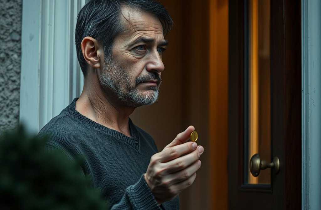 В замочной скважине торчала монетка. Маленькая, почти незаметная, но её там быть не должно. Живу один, и уж точно ничего подобного не оставлял.