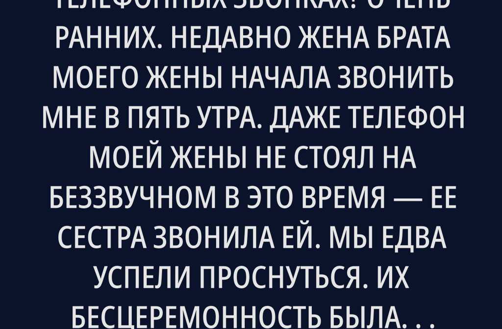 Недавно жена брата моего жены начала звонить мне в пять утра. Даже телефон моей жены не стоял на беззвучном в это время ее сестра звонила ей. Мы едва успели проснуться. Их бесцеремонность была потрясающей.