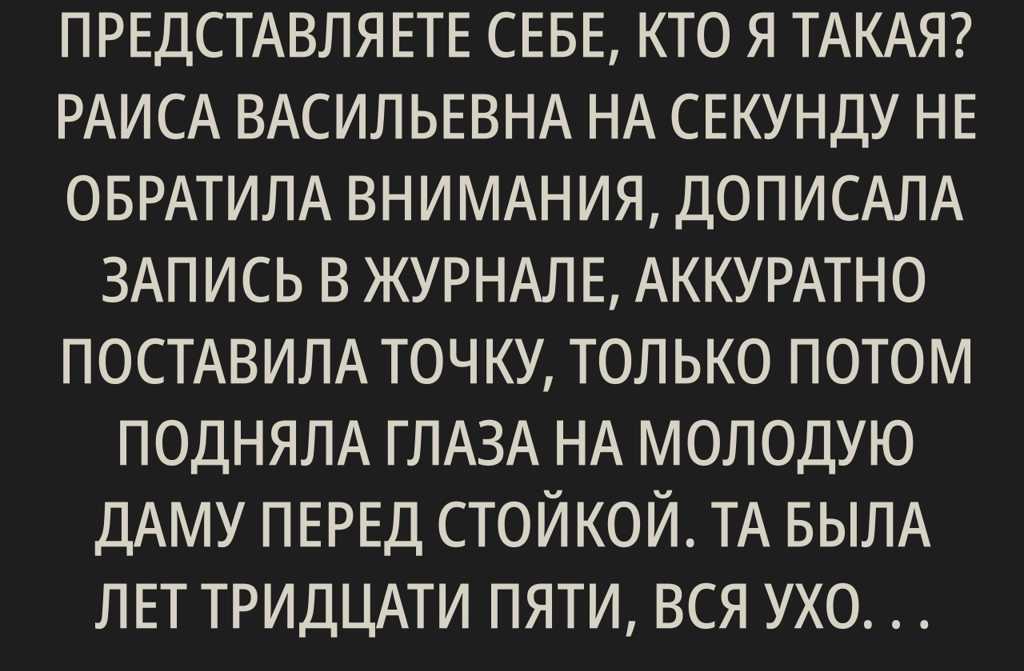 Раиса Васильевна на секунду не обратила внимания, дописала запись в журнале, аккуратно поставила точку, только потом подняла глаза на молодую даму перед стойкой.