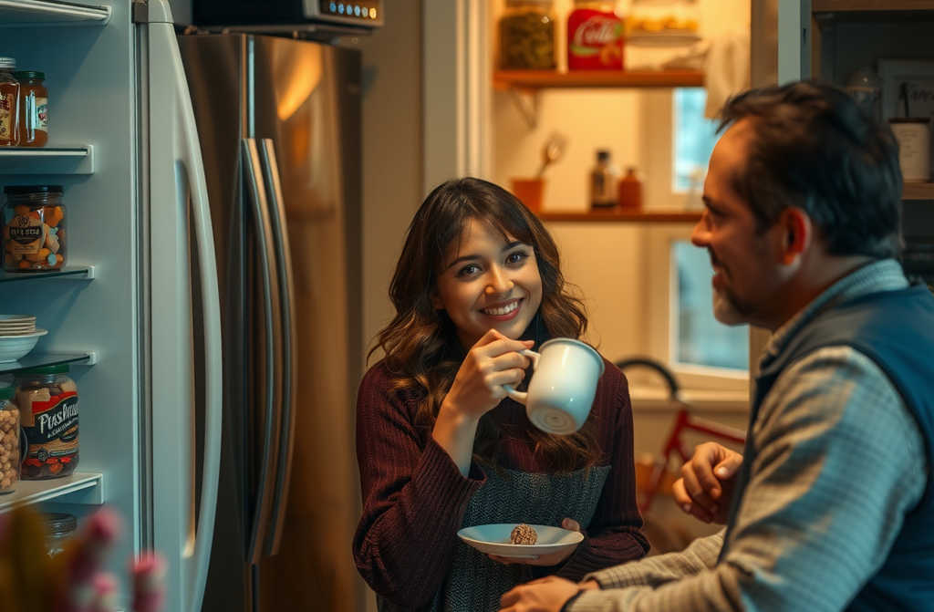 Теперь она прячет сладости в шкафу, когда я ухожу в гараж, выпивает чай с конфетами. Колбасу и сыр она прячет в холодильнике подальше от моих глаз, чтобы съесть, когда я не замечаю. Спасает, что у нас два холодильника: в одном обычные продукты, а во втором баночки с соленьями, куда она прячет свои запасы.