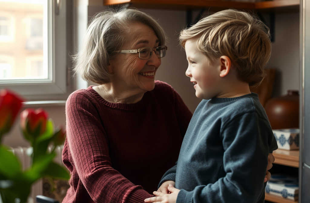 Здравствуй, мой мальчик! прижимает к себе бабушка.