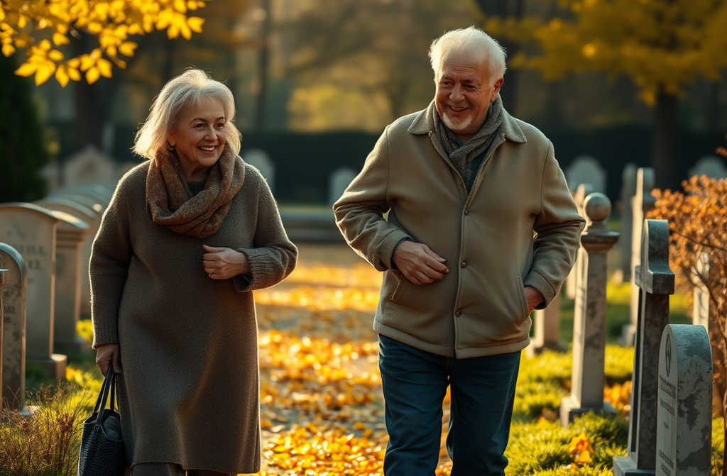 Пошли они вдвоём, под руку, по желтой кладбищенской аллее вдоль памятников.