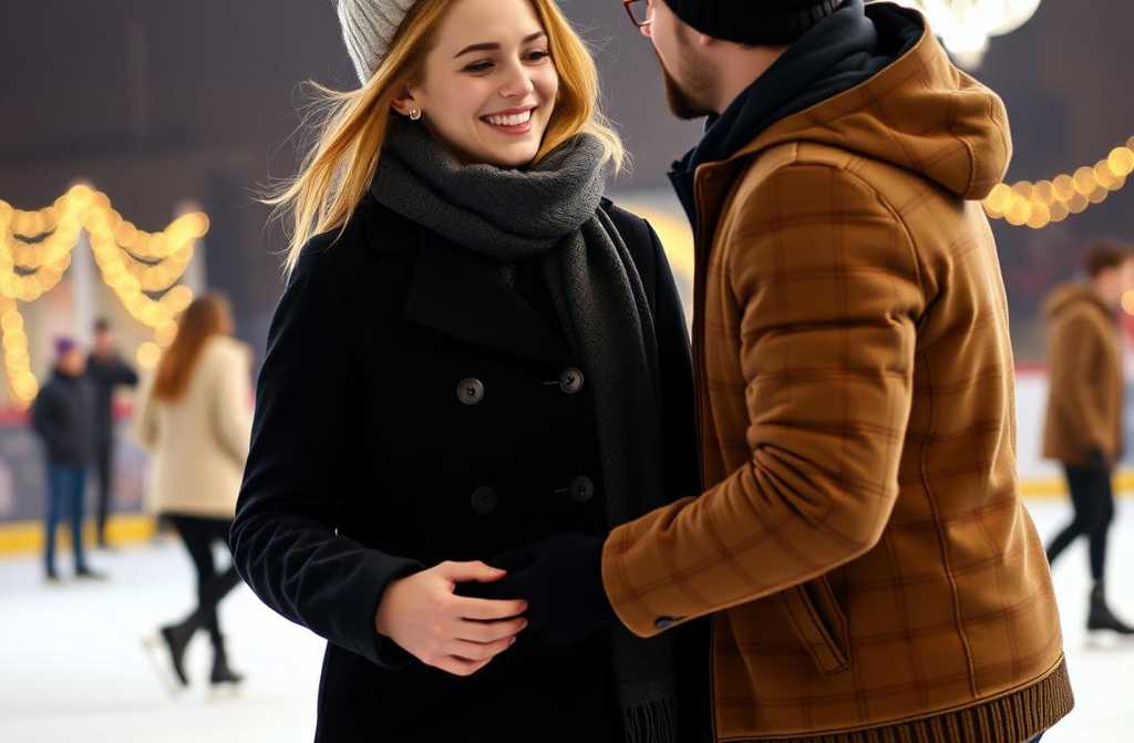 Так Настя влюбилась в Дмитрия. В морозное воскресенье она с подругами отправилась на каток. Каталась она неуверенно, осторожно, часто останавливалась. Подруги, устав от её медлительности, уехали вперёд, оставив Настю одну. Вокруг неслись уверенные фигуристы, обходя её стороной.