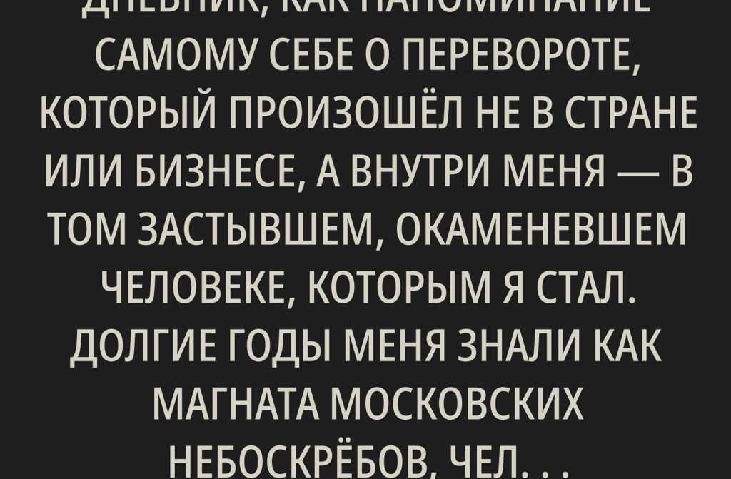 Я записываю это в свой дневник, как напоминание самому себе о перевороте, который произошёл не в стране или бизнесе, а внутри меня в том застывшем, окаменевшем человеке, которым я стал. Долгие годы меня знали как магната московских небоскрёбов, человека холодного и несгибаемого, словно сталь Башни Федерации, которую я когда-то воздвигал. Мне дали кличку Архитектор Тишины не за умение пробираться через безжалостные сделки, не проронив ни слова лишнего, а за абсолютную невосприимчивость к человеческим чувствам, будто эмоции это издержки, которых нужно избегать.