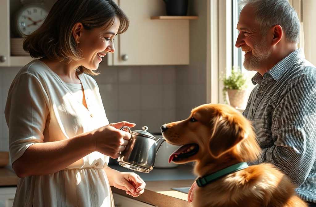 Утром все уходили на работу и в школу, а дома оставались только собака Бимка и кошка Маруся. В аквариуме жила черепаха, которая вытянув шею, наблюдала за хозяйкой. После кормления рыбок Валентина позвала Бимку к себе на чашку чая. Пёс, умный чау-чау, сидел у стола, глядя на неё карими глазами, будто ожидая лакомства.