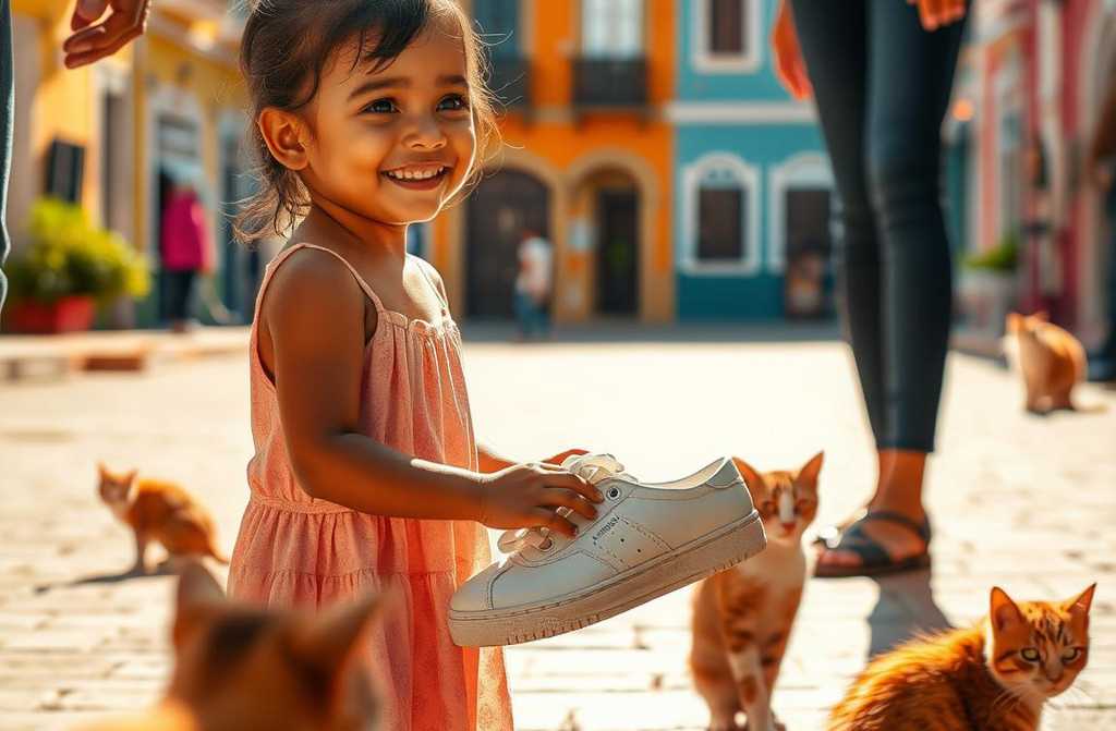 А когда она подросла, то вернулась туда, где всё началось, и увидела других босоногих девочек. Подошла к ним не учить, а просто показать своим примером, что можно идти по жизни гордо, смело и с надеждой. И тогда её белые кроссовки перестали быть только её они стали символом силы, уважения и любви к себе для всех, кто в этом нуждался.